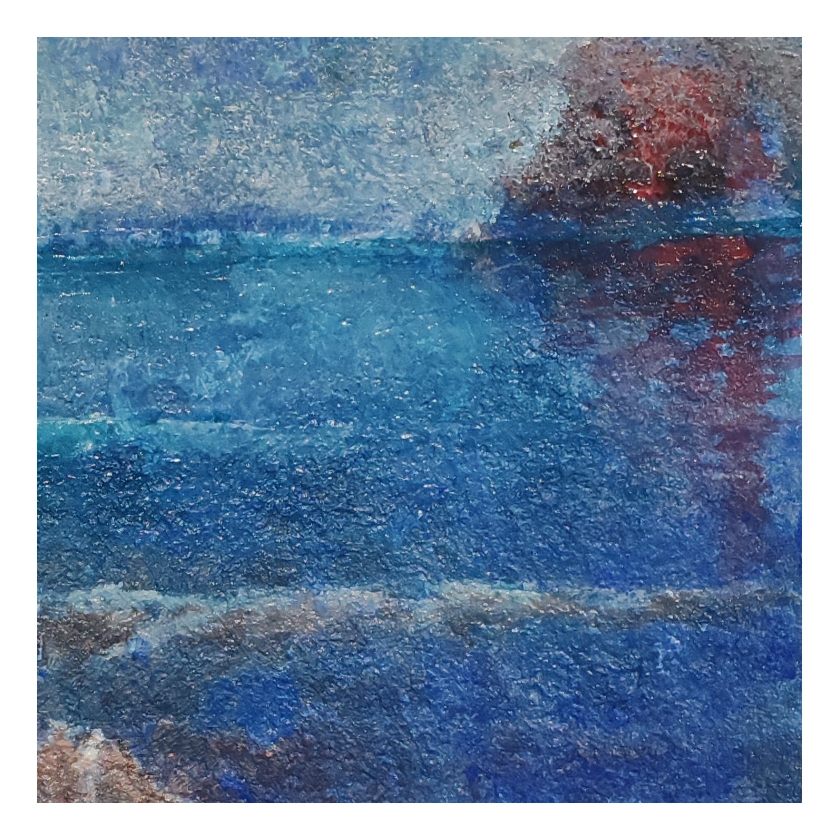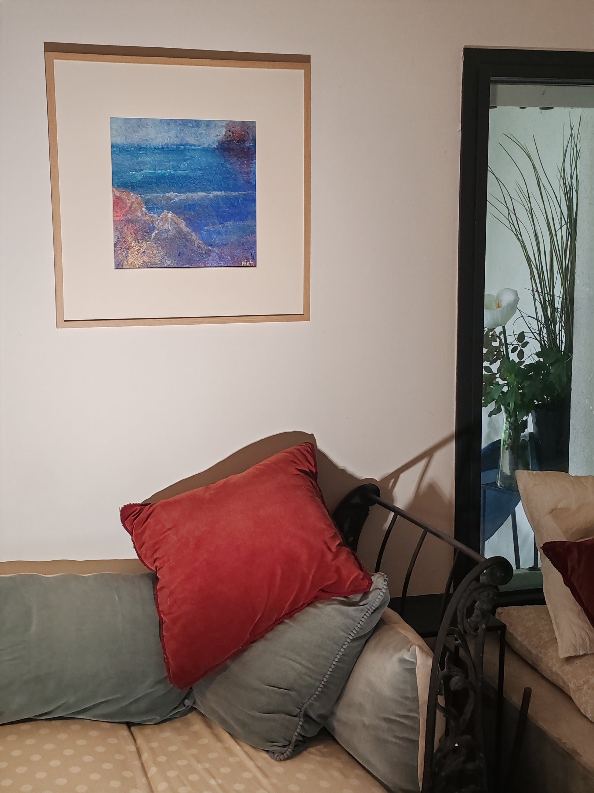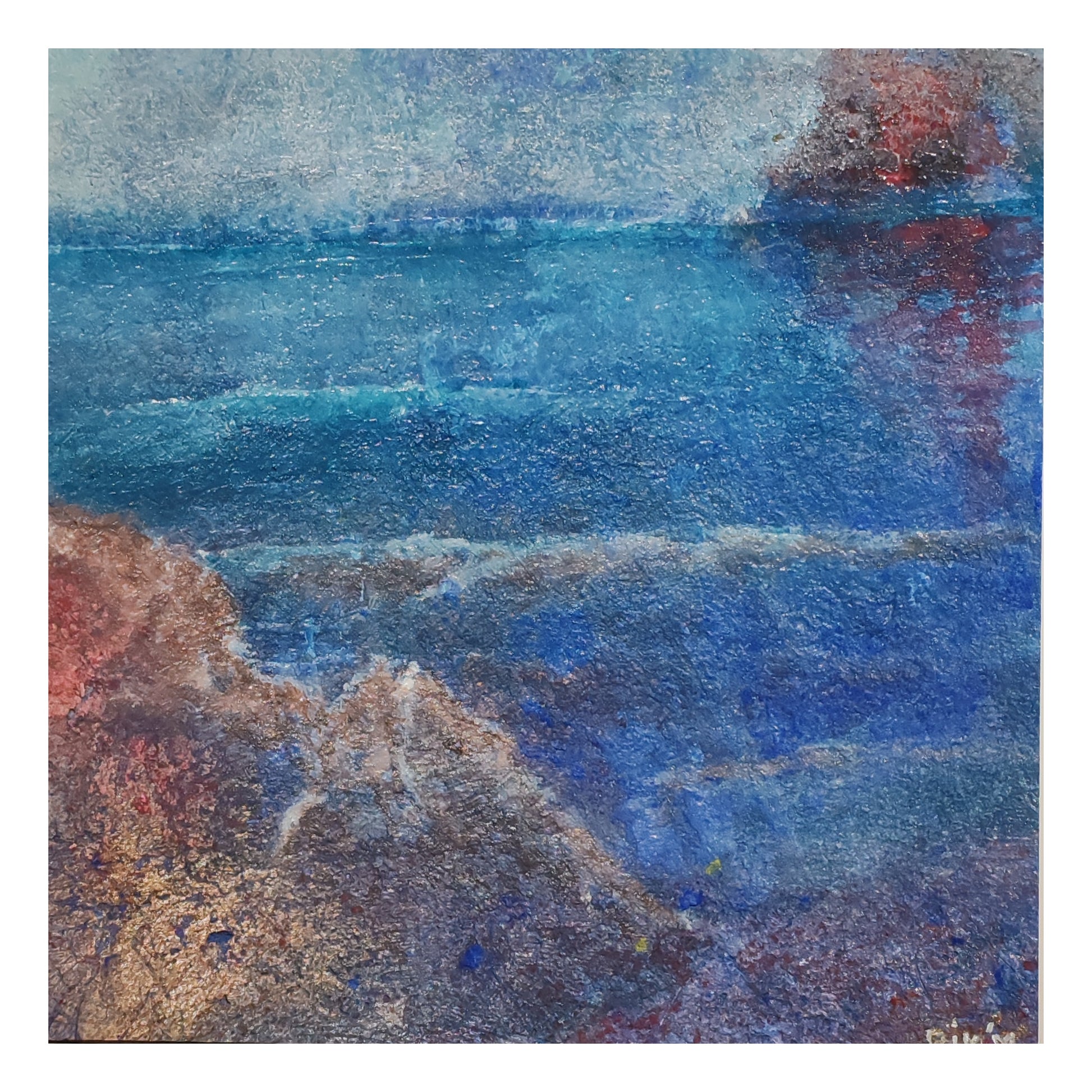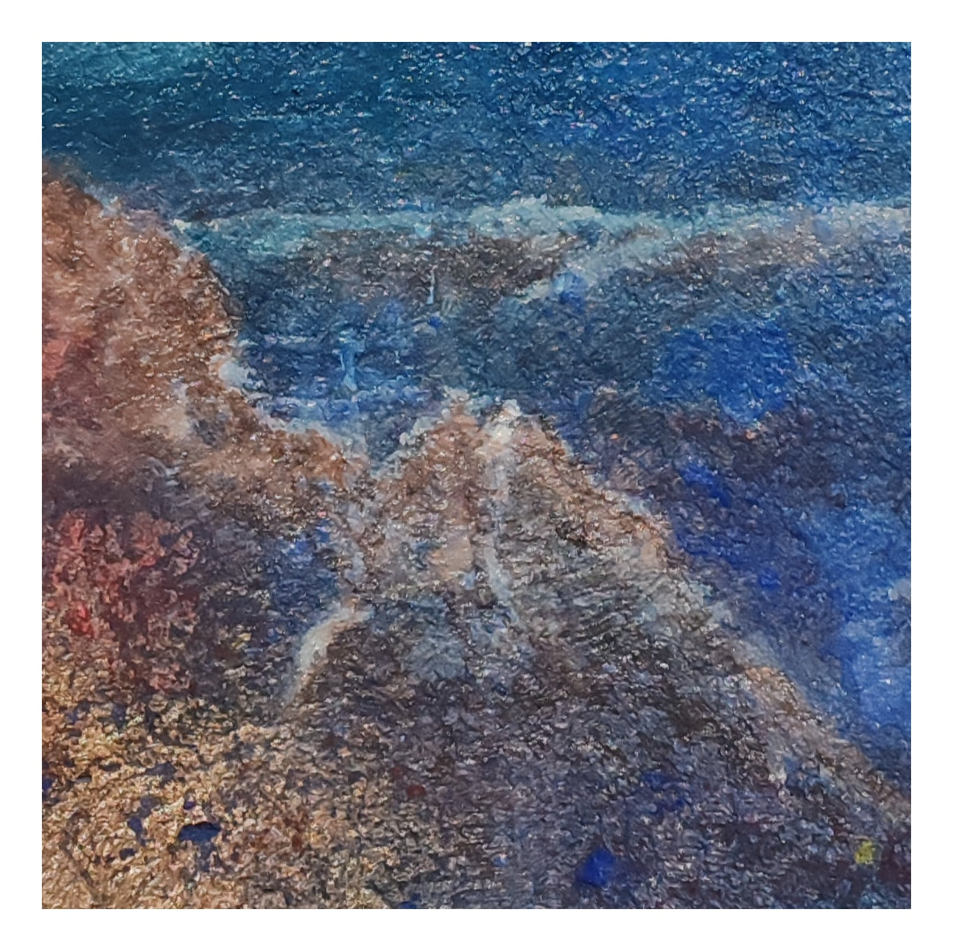 Technique mixte sur papier en bouse d'éléphant 30x30 cm encadrement bois et passe-partout blanc 50x50 cm