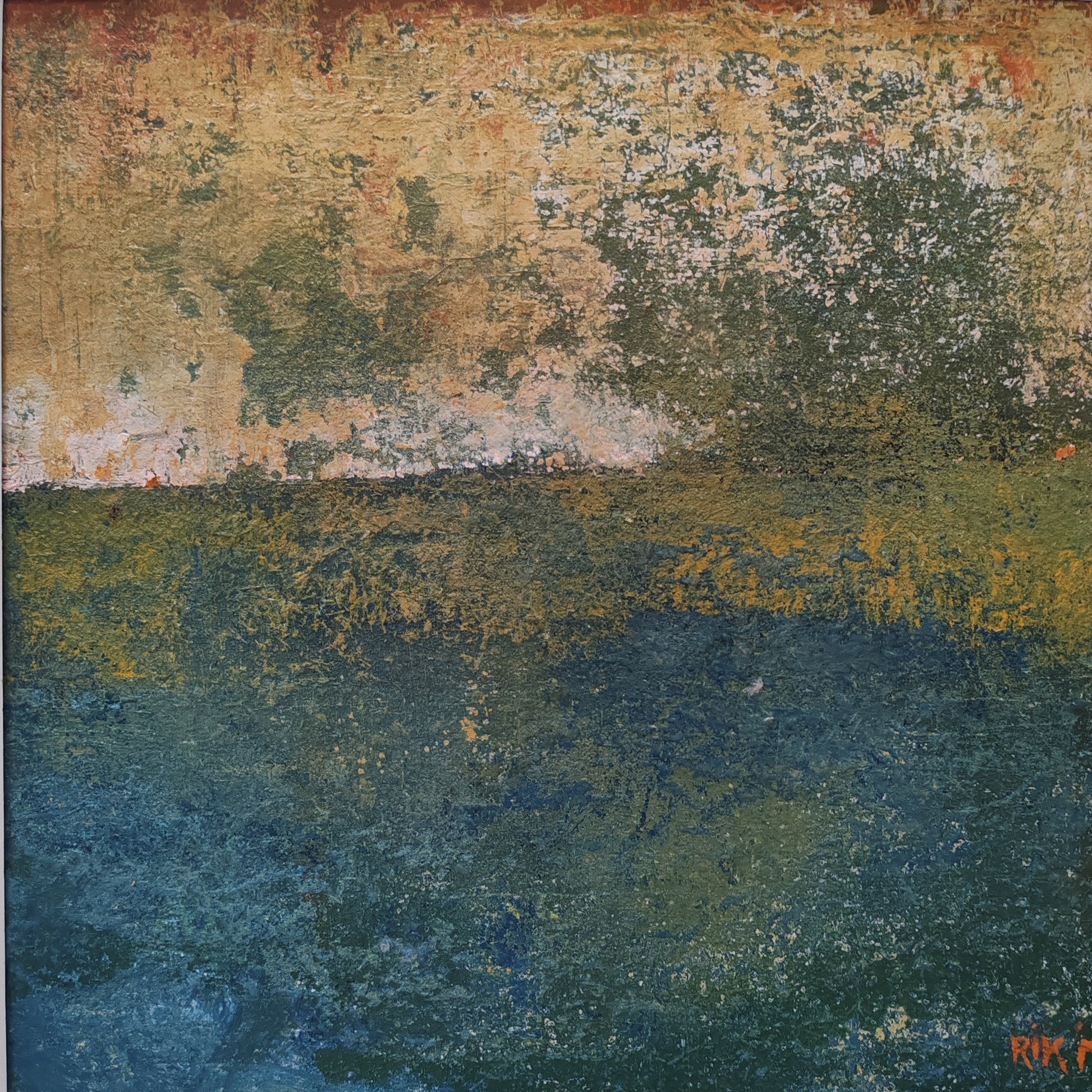 Technique mixte sur papier en bouse d'éléphant 30x30 cm encadrement bois passe partout blance 50x50 cm