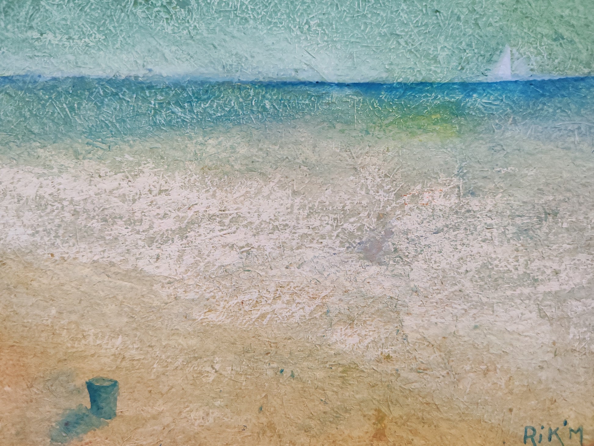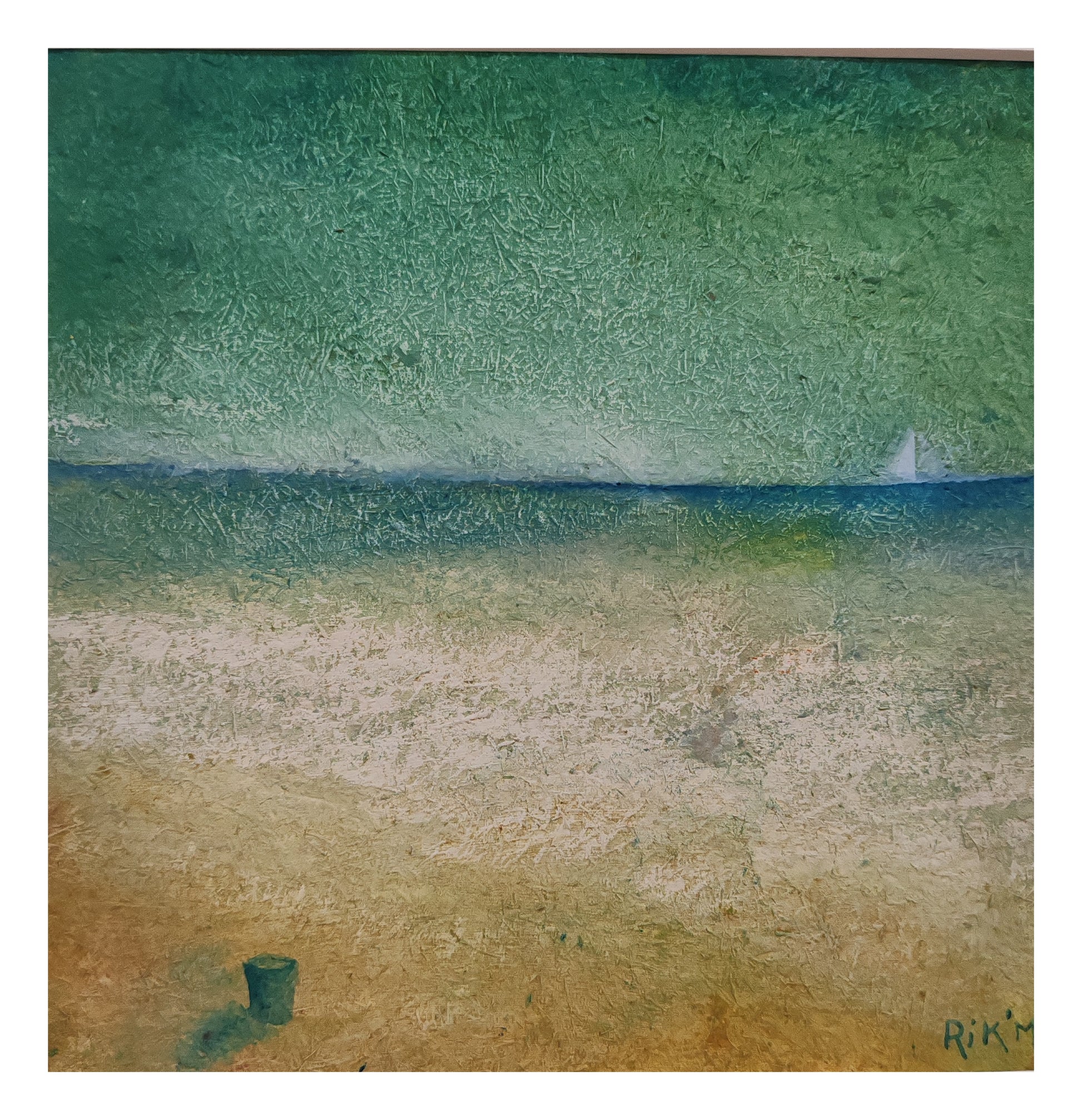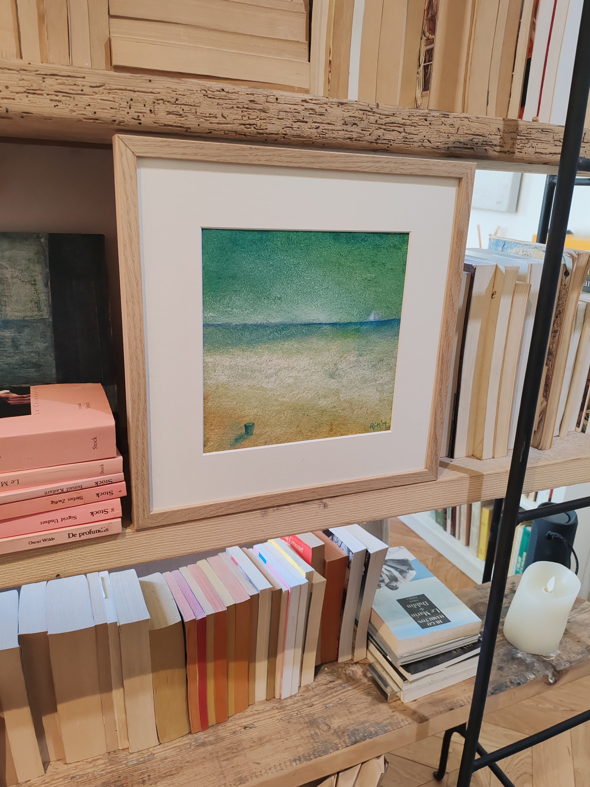 Huile et encre sur papier en bouse d'éléphant 20x20 cm