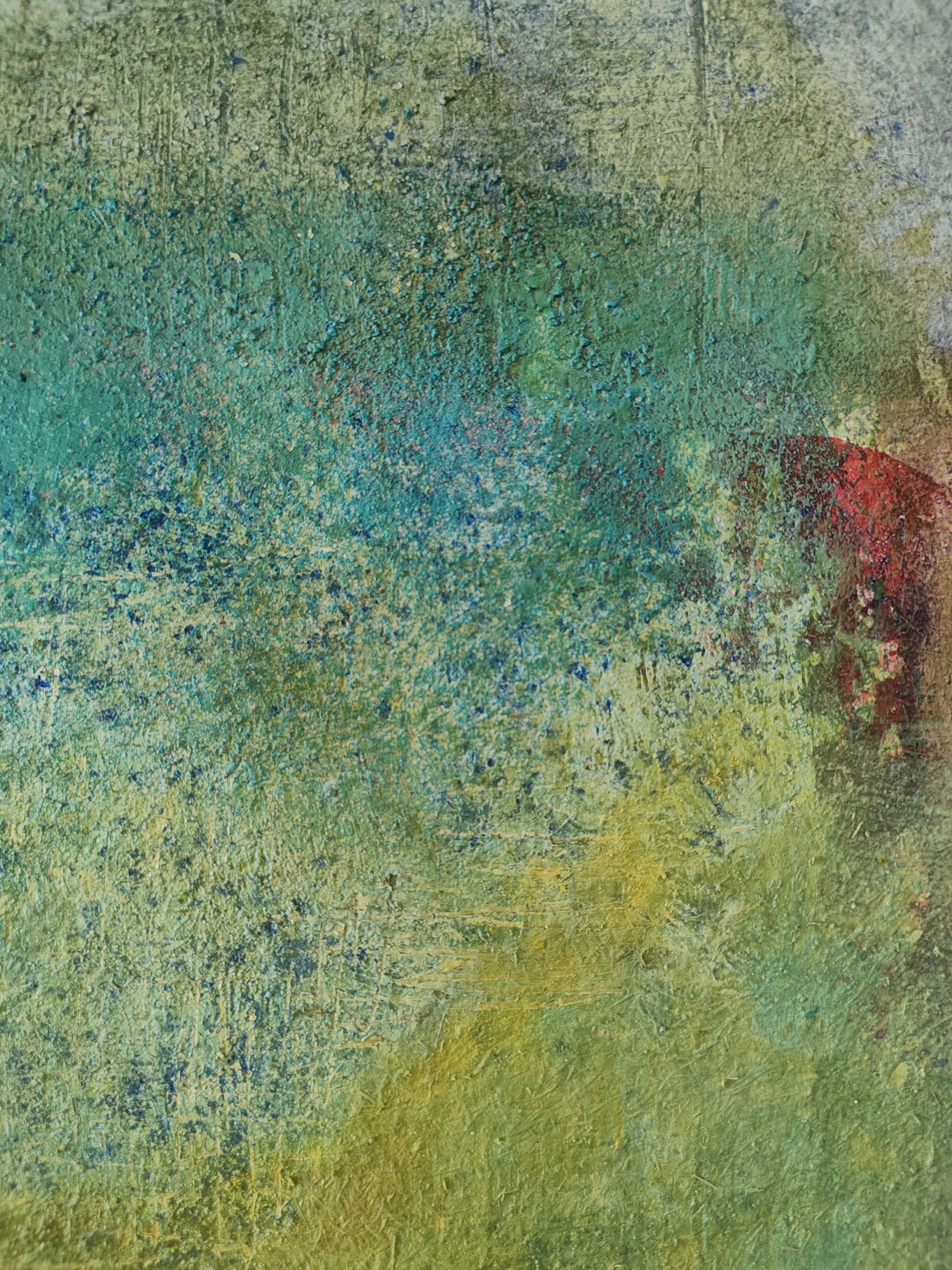 Techniue mixte (encre, acrylique, chanvre) sur papier en bouse d'éléphant. 30x30 cm encadrement 50x50 cm et passe partout blanc