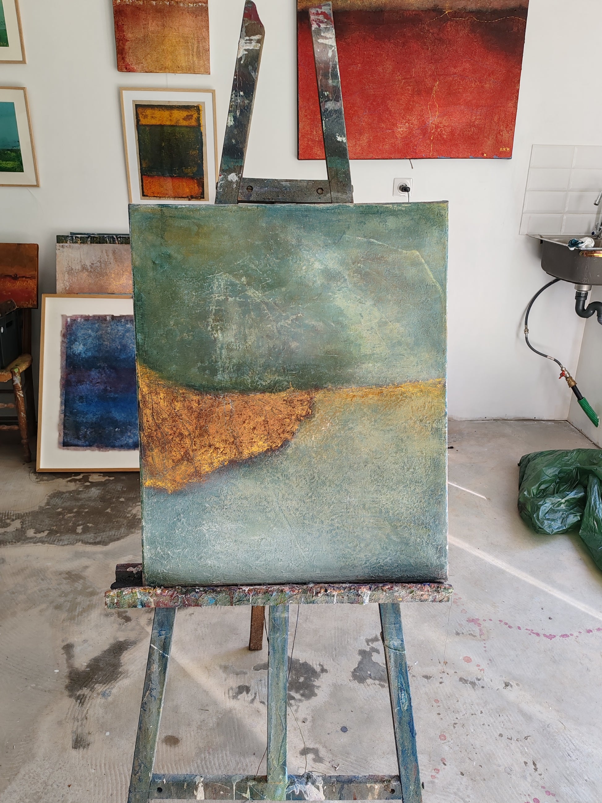 Technique mixte (encre, acrylique, gravure, crin) sur toile de lin 80x60 cm